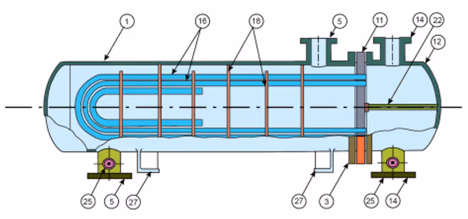 U-tube design allows for differential thermal expansion between the shell and the tube bundle as well as for individual tubes.