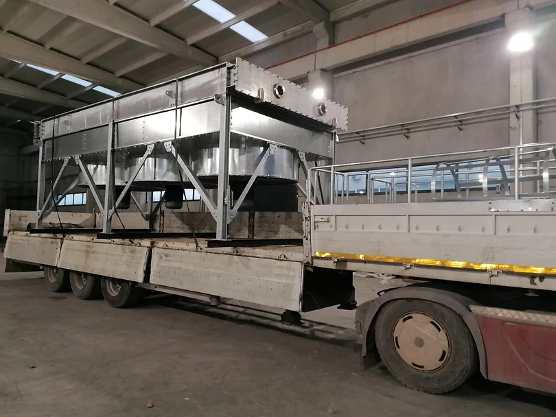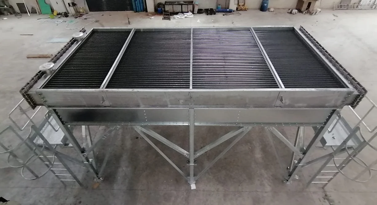 Air soğutmalı ısı eşanjörü kurulumu, kanatlı borulu ısı isanjörü, çelik destek yapısını, eksenel fanlar, V-kayış sürücüleri, yatak fabrikaları ve elektrik motorları dahil olmak üzere tahrik ekipmanı dahil.