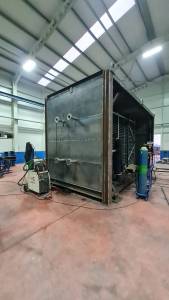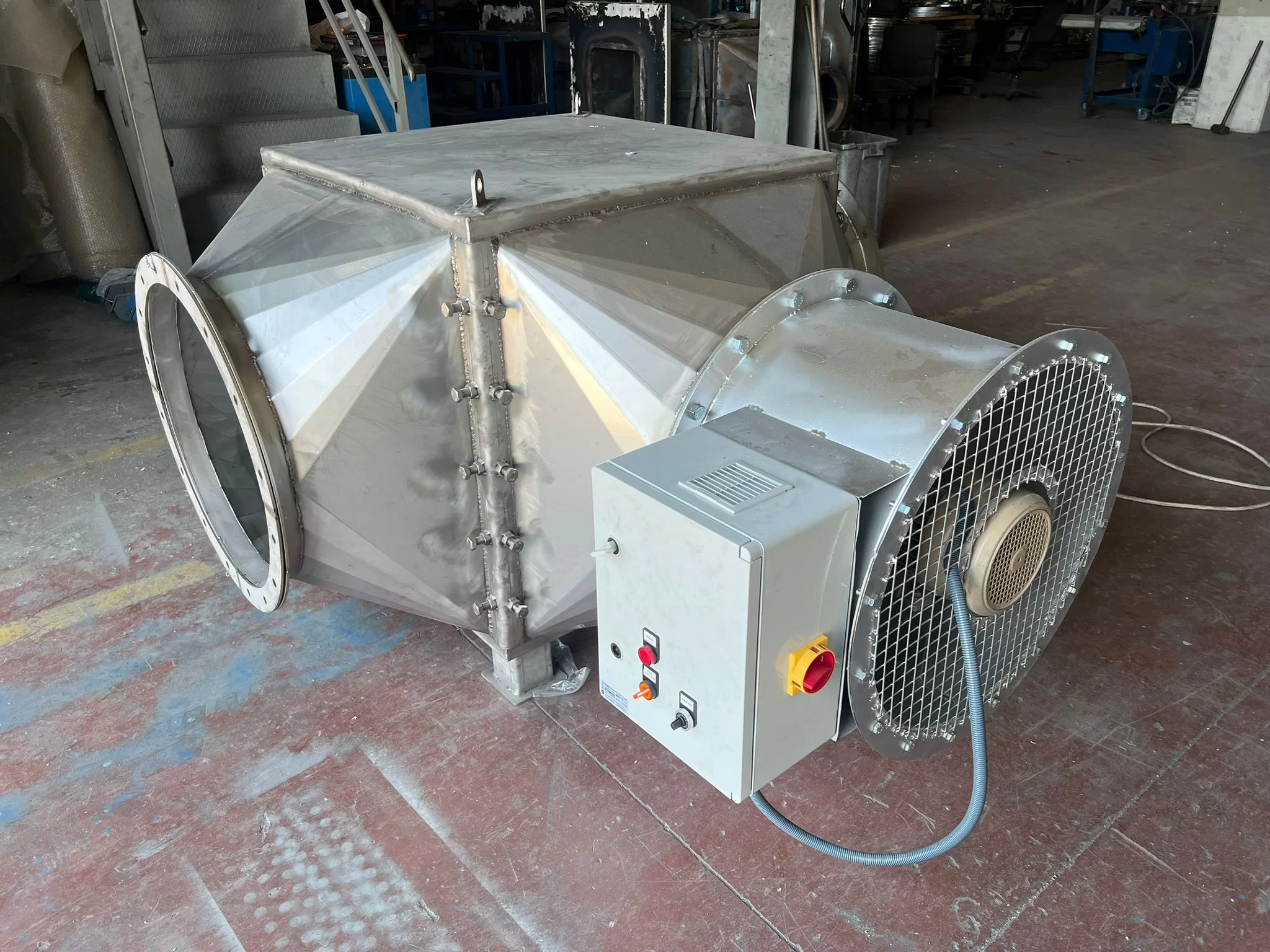 Tasarıma göre boru uzunluğu 5700 mm, ürün yüksekliği yaklaşık 2500 mm ve derinliği 1050 mm'dir. Giriş ve çıkışta davlumbaz boyutlarını eklediğimizde, ürünün derinlik ölçümü 1050 mm'den büyük olacaktır.