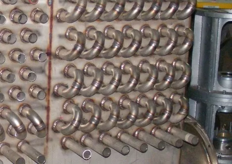 Tüpler genellikle AISI316 olarak seçilir ve kalınlıkları 1 mm ile 1,5 mm arasındadır. Yüksek H2>200 ppm miktarı bu eşanjörlerde korozyon sorunlarına neden olabilir.
