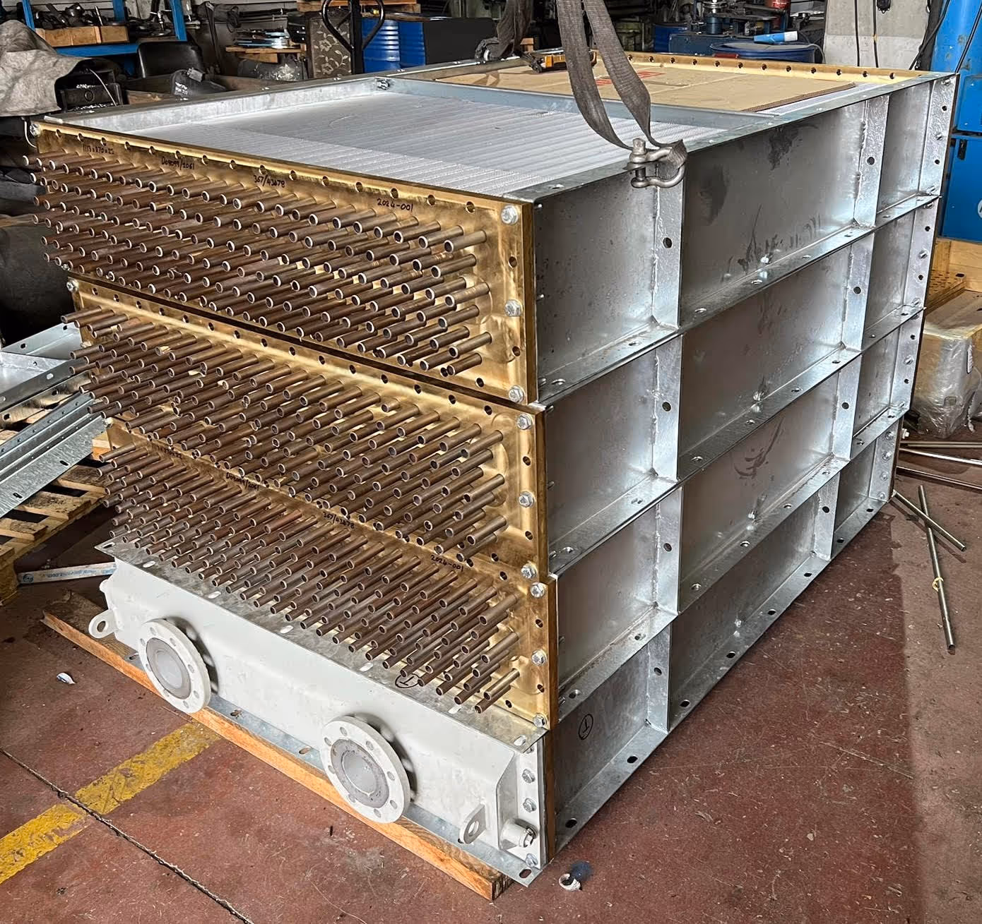 Motor ve jeneratör yüzey hava soğutucusunun mekanik temizliğine yardımcı olmak için, eşanjör gövdesi çıkarılabilir bir kollektör başlık ile boru aynası arasına sabitlenir. Başlık ayrıca tahliye ve havalandırma tapaları ile donatılmıştır. Başlıklar Rilsan® kaplı çelik, paslanmaz çelik veya titanyumdan yapılabilir. Soğutucu, sadece başlıkları çıkararak ve boruların içinde bir fırça kullanarak dahili olarak temizlenebilir.